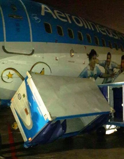 Al paecer, el viento movió un Boeing 737 de Aerolíneas Argentinas unos 90 grados y desplazó carretillas, escaleras, contenedores y otros materiales, algunos de los cuales impactaron con gran fuerza contra los aviones, causando daños en el fuselaje.