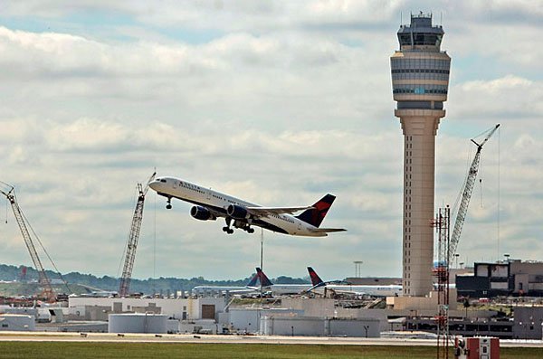 El Aeropuerto Internacional de Hartsfield-Jackson de Atlanta, actualmente considerado como el aeropuerto más concurrido del planeta, cuenta con la tercera torre de control del tráfico aéreo más alta del mundo y la de mayor altura de América del Norte. La torre de control, con 121,31 m de altura, fue encargada en 2006 para soportar un promedio de 2.500 llegadas y salidas todos los días.