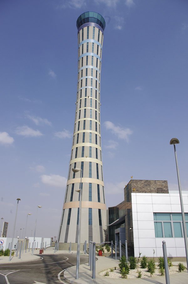 El Aeropuerto Internacional de El Cairo posee la sexta torre de control del tráfico aéreo más alta del mundo con sus 110 m de altura, encargada en noviembre de 2010 para satisfacer los requisitos futuros en el aumento del tráfico aéreo del país. La cabina de la torre de control cubre un área de aproximadamente 85 m², mientras que la zona de servicios técnicos abarca una superficie de 3.000 m².
