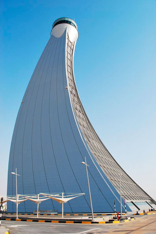 La séptima torre de control del tráfico aéreo más alta del mundo con sus 109 m de longitud, se localiza en el Aeropuerto Internacional de Abu Dabi. La torre, que consta de un edificio de 20 plantas, está situado entre las dos pistas existentes cubriendo una superficie de 7.000 m².