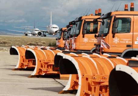 Los aeropuertos de la red de Aena cuentan con medios propios y medios contratados a empresas externas para la retirada de la nieve y el hielo.