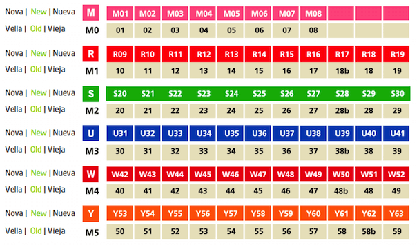 Hasta el momento, la zona de embarque de la T2 se divide en módulos del 1 al 5 y las puertas tienen una numeración correlativa. Tras el cambio, cada zona de embarque se denomina con una letra y un color específico y, a su vez, cada puerta con una letra y un número correlativo. Se trata del mismo criterio de zonificación que se utiliza en la terminal T1.