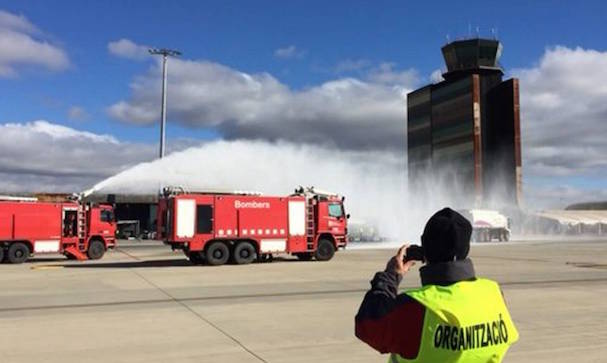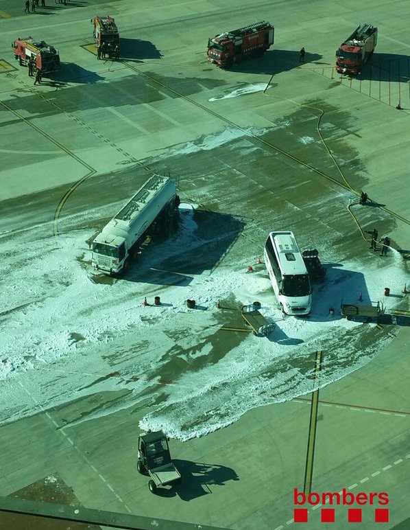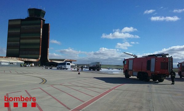 Los Bomberos de la Generalitat han desplazado cinco dotaciones (tres camiones y dos vehículos ligeros de apoyo y coordinación) con un total de 15 efectivos. A la llegada al servicio, el mando de Bomberos se ha puesto en contacto con el mando del Servicio de Extinción de Incendios del aeropuerto (SEI). En este momento, los Bomberos de la Generalitat han apoyado al SEI en las tares de evacuación del herido de la zona peligrosa.