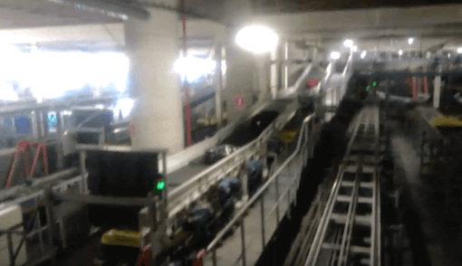 2.- Las maletas cruzan los 2,5 km que separan la T4 de la T4S a 10m/s (unos 40 km/h). En T123, al ser el transporte por banda, se desplazan a una velocidad aproximada de 7,2 km/h.
