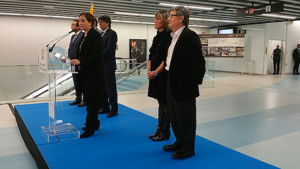 La alcaldesa, Ada Colau, efectuó el pasado viernes 12 de febrero en el primer trayecto del tramo nuevo de la línea L9 del metro, desde Zona Universitaria hasta el Aeropuerto. Estuvo acompañada del presidente de la Generalitat, Carles Puigdemont; el vicepresidente, Oriol Junqueras; el consejero de Territorio y Sostenibilidad, Josep Rull, y la alcaldesa de l’Hospitalet de Llobregat, Núria Marín, y el alcalde del Prat de Llobregat, Lluís Tejedor.