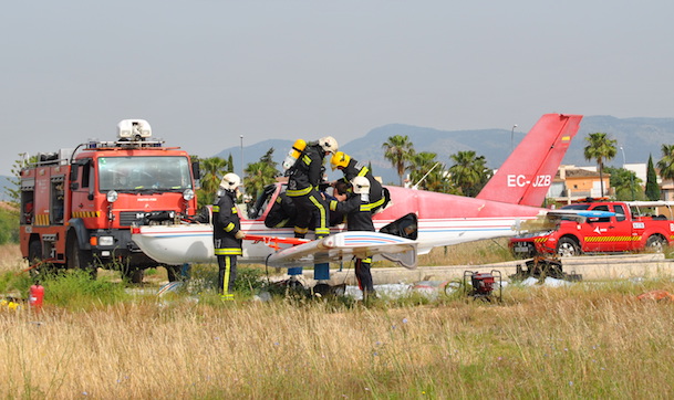 Bomberos (SSEI), Seguridad y Guardia Civil (GC) se personan en el lugar del accidente y el SSEI inicia las labores de aseguramiento de la aeronave para que los sanitarios puedan estabilizar a los heridos en su interior. Es entonces cuando los bomberos de Son Bonet, del Aeropuerto de Palma de Mallorca y del Consell pueden iniciar, una vez estabilizados por los sanitarios, la excarcelación de los heridos atrapados.