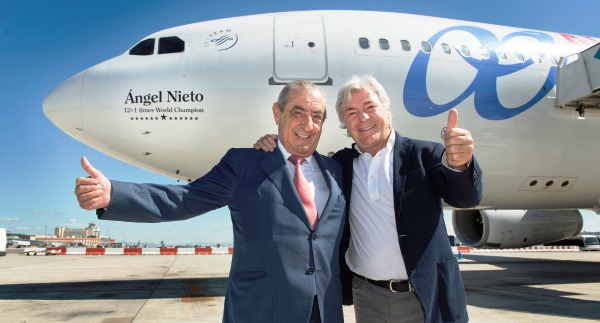 Air Europa ha querido rendir homenaje al piloto de motociclismo Ángel Nieto poniendo su nombre a unos de sus Airbus 330 destinado a realizar rutas transoceánicas.