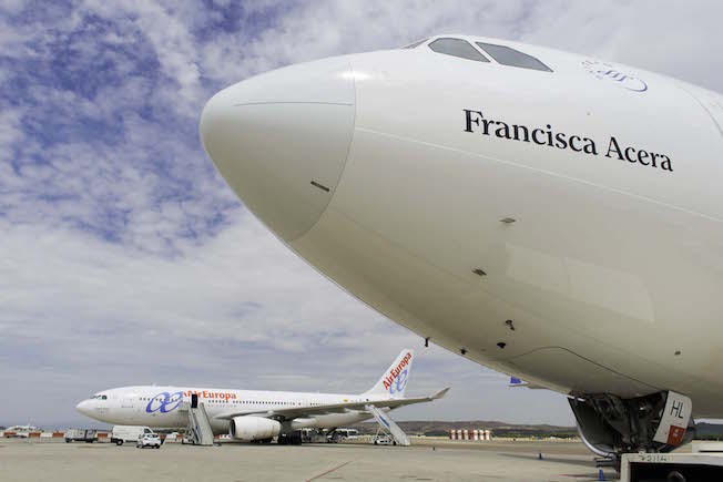 El nuevo A-330/300 ha llegado a la compañía española, recién salido de la fábrica de Airbus, después de que la aerolinea japonesa que inicialmente lo adquirió cesara su actividad. Está equipado con dos motores Rolls Royce Trent de última generación que reducen un 5% el consumo de combustible y que proporcionan una autonomía de 10.500 kilómetros, suficiente para cubrir cualquiera de los destinos actuales de Air Europa.