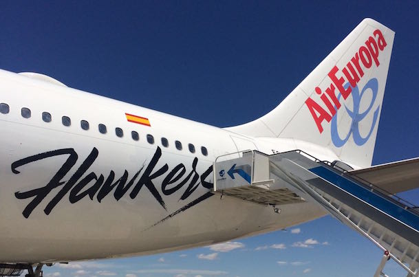 El avión cuenta con el servicio WiFi vía satélite, lo cual permitió la retransmisión del evento en las redes sociales en tiempo real. Durante el vuelo, los seguidores de ambas marcas en Twitter, con el apoyo de los pasajeros, lograron que el hashtag #HawkersxAirEuropa se convirtiera en trending topic tuitearlo en directo.
