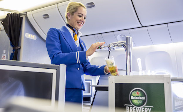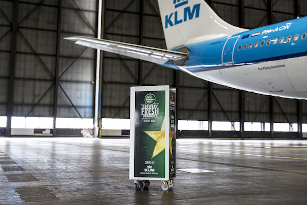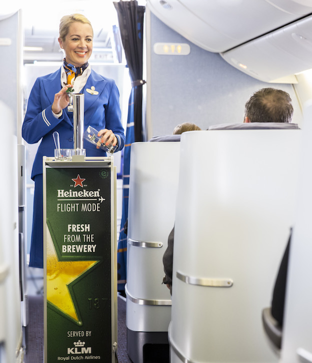 KLM estrenó el pasado miércoles 31 de agosto un exclusivo servicio para los usuarios de la clase de negocios: un recipiente con cerveza de barril de la marca Heineken. Los primeros en disfrutarlo fueron los pasajeros del vuelo KL735 de Amsterdam a la isla caribeña de Curaçao.