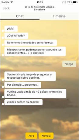 Para el director de Marketing Digital de Vueling, Samuel Lacarta, «nuestro objetivo al desarrollar este asistente virtual ha sido ayudar el cliente con el proceso del viaje, algo que el móvil nos permite hacer mejor que nunca, porque siempre lo llevamos con nosotros encima y es nuestra herramienta de comunicación por excelencia».