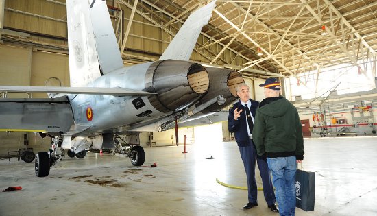 La visita de Gustavo comenzó en el Ala 12 donde pudo ver y conocer por dentro un caza F-18, uno de los aviones más reconocidos del Ejército del Aire, además recibió una explicación sobre las labores y misiones que realiza la unidad.