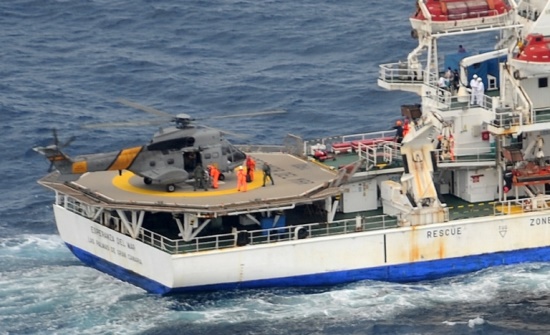 A las 10:30 horas de la mañana siguiente, sábado día 27, un Súper Puma (HD.21) del 802 Escuadrón de Fuerzas Aéreas, despegó desde la Base Aérea de Gando para la realización de la evacuación. Embarcó al enfermo en el helicóptero a las 13:10, hora de las Islas Canarias, tras tomar en el buque hospital.