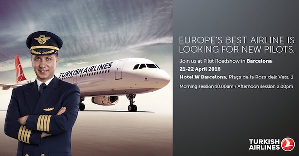 Turkish Airlines quiere contratar a 650 pilotos nuevos a lo largo de 2016 y España es uno de los países donde acudirá en busca de los mejores profesionales. El roadshow ‘cazatalentos’ que hará la aerolínea tendrá parada los días 21 y 22 de abril en el Hotel W de Barcelona para que todos aquellos interesados puedan acercarse. La flota de la aerolínea está formada por 309 aviones de pasajeros y caga.