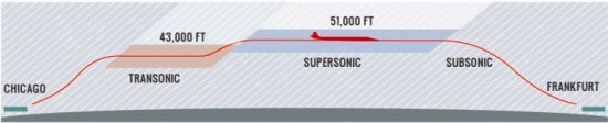 La velocidad de la aeronave se puede incrementar hasta Mach 1,6 (1.960,1 km/h) sobre el agua, siendo capaz en un solo vuelo de operar a alta velocidad subsónica, baja velocidad supersónica y alta velocidad supersónica. El alcance máximo de la aeronave será de 9.260 kilómetros, logrando una distancia de aterrizaje de menos de 1.219 m y requiriendo una longitud en pista de 2.286 m para el despegue cuando se encuentra a máxima capacidad de combustible. No obstante, la longitud de la pista puede ser de 1.828 m o menor al llevar menos carga de combustible.