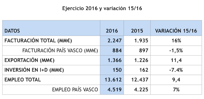 Si bien el crecimiento se ha producido en prácticamente todas las entidades miembros, el valor absoluto sigue siendo un efecto del crecimiento de las industrias cabecera y no debido al importante aumento del número de socios. Las exportaciones, a su vez, aumentaron un 11,4% con respecto a 2015, hasta 1.366 millones de euros.