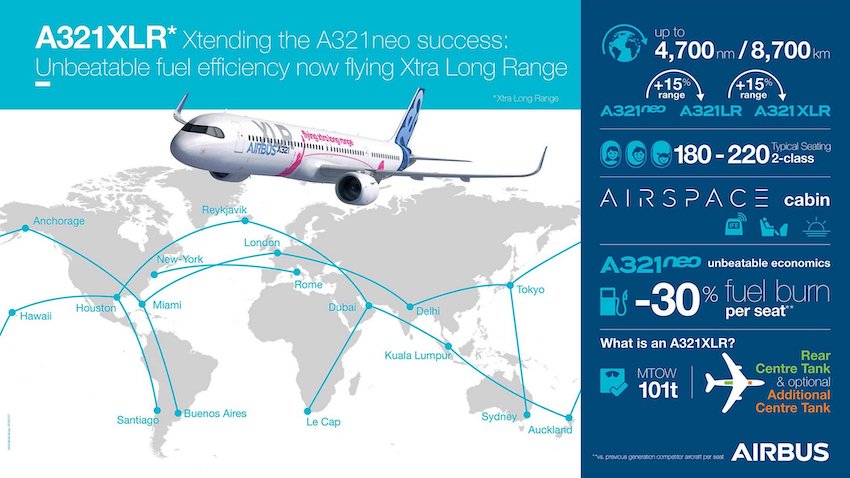 Together with Airbus’ A330neo, the A321XLR perfectly addresses the “middle of the market” (the gap between single-aisle aircraft and the smallest widebodies), and also enables Airbus to enhance the product coverage between its A220 and A320 single-aisle families and the widebody A330neo and A350 XWB.