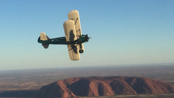 El Boeing Stearman, sobrevolando Ayers Rock, en Australia