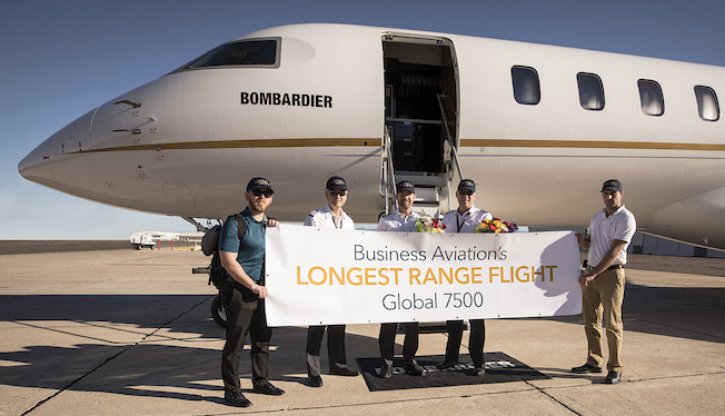 Bombardier Global 7500 completes the world’s longest range business jet flight in history