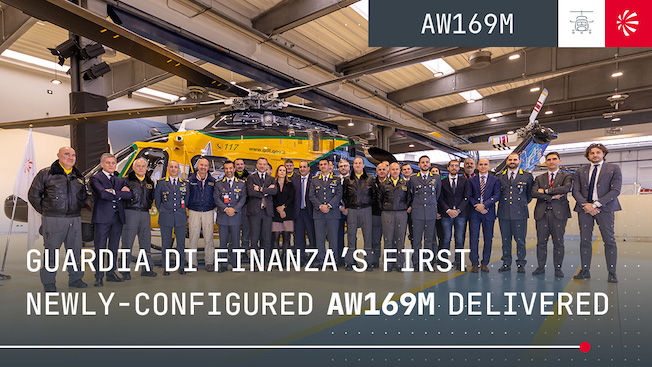 Leonardo and Guardia di Finanza (Italy’s Police Force with general capability in economic and financial matters as well as the only maritime Police Force in Italy) celebrated today the delivery of the operator’s first AW169M light-intermediate twin engine helicopter in a special configuration featuring skids.