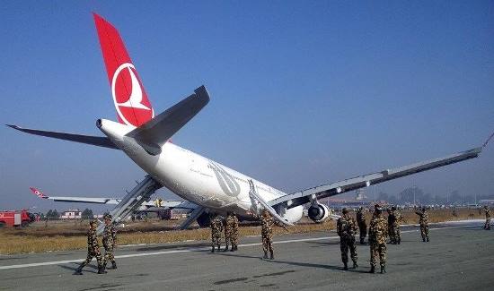 Un Airbus A330 de Turkish Airlines se sale de la pista de Katmandú cuando aterrizaba