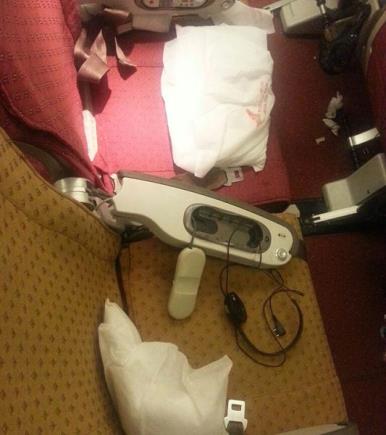 El pasajero rompió los reposabrazos de dos asientos y amenazó con destrozar otros asientos de la cabina del avión. El suceso se produjo cuando el avión volaba ente Riad (ArabiaSaudita) y Calculta (India).
