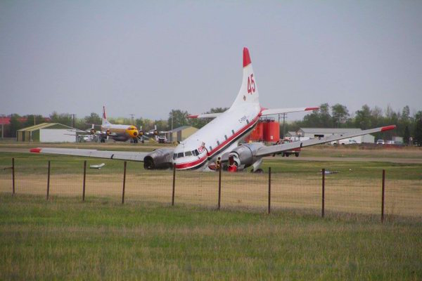 El avión, que pertenece a la compañía Conair Aviation, sufrió importantes daños. El avión siniestrado se utiliza para labores de extinción de incendios e intenvenía en la extinción de un incendio forestal cerca de Manning.