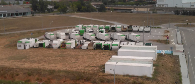 Desde hace unos días la flota de camiones de residuos no renovados de Sabadell se emplaza en un solar situado en el interior del Aeropuerto de Sabadell. Hasta ahora estos camiones de residuos estaban ubicados en diferentes espacios de la ciudad.