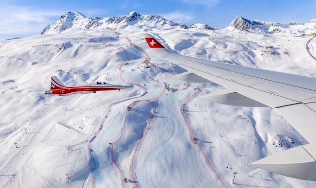 El evento se efectuó en el entorno del espacio aéreo de la estación de esquí de Saint Mortiz, en la que se celebró del 6 al 19 de febrero el Campeonato del Mundo de esquí alpino, evento de que era patrocinador la aerolínea.